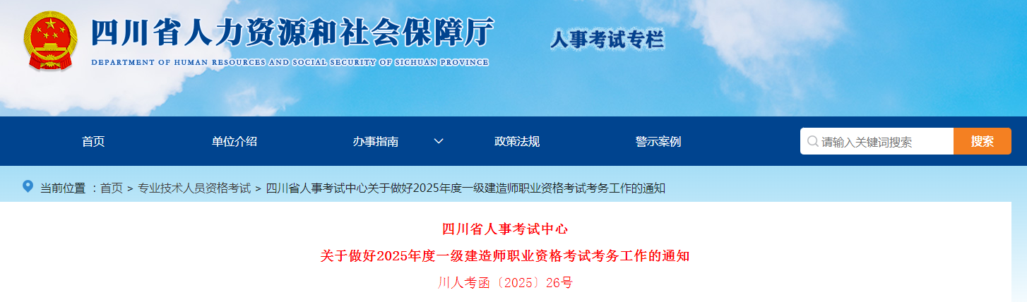 关于做好2025年度一级建造师职业资格考试考务工作的通知来源:四川人事考试网
